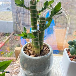 そして今日のお花が花じゃないけど ミリオンバンブーちゃんだったので我が家の窓際のミリオンバンブーちゃん達を撮りました📸 ゆうちゃんはずーっとバンブーっていうから竹なのかと思ってたらドラセナ属だと知ってびっくりしたんだよね😅💦 やっぱり好きだなぁーって思う植物は似たものを好きになる傾向があるみたいです笑 そしてミリオンバンブーも真っ直ぐな子とクネクネしてる子が居るけど 我が家のミリオンバンブーちゃんはとにかく元気で西部屋のミリオンバンブーちゃんはもうゆうちゃんの身長を越してユッカと同じ高さまで育ってます😂 次はそっちのミリオンバンブーちゃんも撮るね📸 #今日のお花#ミリオンバンブー#窓際#パキラ