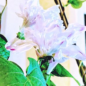 晩夏の孤高の朝顔咲きました♡♡♡ クシャクシャさんも普通のも~૮₍。• ᵕ •。`₎აアリガト 🤍゚・。𓂂ꕤ*.゚。・゚🤍゚・。𓂂ꕤ*.゚。・゚🤍゚・。𓂂ꕤ*.゚。・