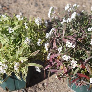PWスーパーアリッサム 昨年の新品種 アイシクルナイト 1 植え付けから3ヶ月 大きくなってきたので5号鉢に植え替えました 安定のスーパーアリッサム コンモリ良い感じで、寒さに負けずに元気でお花が咲いています 2 お迎え時 昨年10月 4号鉢