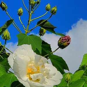 おはようございます🤗 今日は、この暑い中素敵に咲いているお花達と気持ちの良い夏空を投稿しますね😁 1枚目オシロイバナ、2枚目タイタンビカス、3枚目アサガオ、4枚目ペチュニア、5枚目気持ちの良い素敵な夏の青空です🤗🍀 見て下さいね😁宜しくお願いします🙇⤵️