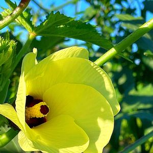 おはようございます🤗 今日は、『今日のお花』オクラと、暑い中の先週の散歩で出逢った素敵なお花達4枚を投稿しますね🤗🍀 1枚目青空に映える『今日のお花』オクラ、2枚目眩しそうなルリマツリ、3枚目青空バックの気持ち良さそうなサルスベリ、4枚目スッキリ爽やかガザニア、5枚目頑張って咲いているゼラニウムです😁🍀 見て下さいね😎宜しくお願いします🙇⤵️