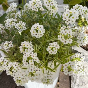 葉っぱが斑入りの スーパーアリッサム フロスティナイト 去年お迎えして 咲いてくれました︎💕︎ モリモリにしたいなぁ