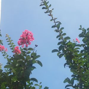 💠サルスベリ💠 夏の代表のお花✨ 青空にピンクが映えますね 初夏~始秋にかけてピンクや白、紅、紫と色鮮やかなお花を咲かせます サルスベリは幹にも特徴があります 木登りが得意なサルでも滑ってしまいそうなほどツルツルとしていることから、その名が付いたとされています🐵