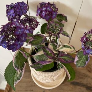 斑入り紫陽花 オーロラパープル(*ˊᵕˋ*)੭ ੈ❤︎ お誕生日プレゼントに 妹から届きました💜 なんて美しいんでしょう (*´▽`人)アリガトウ♡
