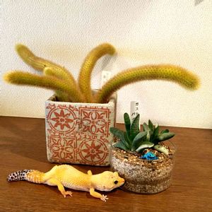 深夜に長々と連投失礼しました😢 レオパが気になる方に、飼い方や雰囲気が伝わればいいなと思い色んな画像をアップしましたが、爬虫類苦手な方は本当にすみません。 これに懲りずにまたちょくちょくアップしていきます🙄 最後はGSらしくグリーン(ハートホヤ)も一緒に写した画像で〆ます📸 もう早朝ですが、おやすみなさい🌜