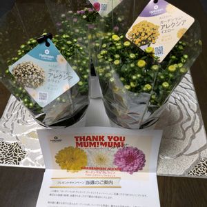 こんにちは😃 昨日いきなり宅配便🚚が届いてビックリ😳‼️ 応募したのもすっかり忘れていたので、何⁇何⁇状態🤨 Hakusanさんより、プレゼントキャンペーン当選のご案内と一緒に、ガーデンマム・アレクシアを3ポット頂きました🥰 ありがとうございました。 沢山の蕾が綺麗に咲きそろうように、頑張って育てたいと思います。 数日前スーパーの園芸コーナーで、一緒に行った家人がマムの大鉢を見て、これ👆と、欲しそうにしてましたが、無視👀してたのを、見てたのでしょうか笑😆 そういえば、そのスーパーの隔月に出る小冊子のプレゼント応募して当選したばかり。(1Kgのスパゲッティ2袋とミートソース🍝のソース1袋) 今度は宝くじかっちゃう⁉️(*☻-☻*) 🏷️金曜日の蕾たちにも参加させてください。