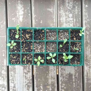 ダリアの子育て 種まき 7月1日 発芽率は40パーセントくらいかなぁ ミックス種なので、どんな色が咲くかな(*●⁰ꈊ⁰●)