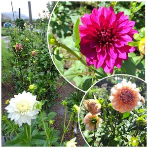 こんにちは😊 連投失礼します🙇💓 ダリアが次々と咲き出しています⤴️⤴️ 1枚め…赤系ダリア💓 大風車、紫月、NAMAHAGEマジック✨ 2枚め…白系ダリア💓 銀世界、和がすり、ペルセウス✨ 3枚め…段菊💜も色づき始めました⤴️⤴️ 4枚め…フラワーアレンジ💓 今日のお花、サルビアを使って… 5枚め…畑ガーデン(元女帝ガーデン) これから咲く秋明菊🤍が、ニラと雑草にのみ込まれていました😧💦 ヤブランは草に負けてませんね😉👌 とりあえず、秋明菊の周りだけ草取りして、買い物へ…🚙💨 帰ってから、続きをやろうとしたら雨が降りだしてきました⤵️⤵️ 明日は晴れ☀️予報だけど…素敵な三連休をお過ごしください🙇💓