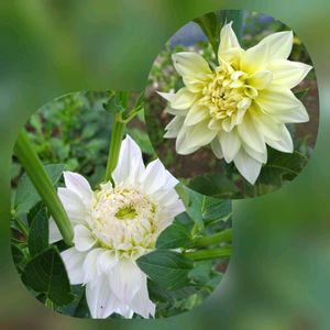こんにちは😊 今日もじんわりと暑いですね🥵💦 1枚め…白系ダリア🤍✨ 名前は、左が和がすり、右はペルセウス💓 名前なんて適当な気がしますね(笑) 2枚め…庭の白い花たち🤍✨ 3枚め…白い花のフラワーアレンジ💓 花友さんの細葉クルクル🌀を真似してみたけど、意外に難しいです😅 🏷️白い貴婦人✨ 🏷️白い水曜日♡に参加します⤴️⤴️ 4枚め…薔薇アーチより…👀💦 5枚め…昨日たまたま見た空✨ 大きいマグロが釣れたよー🙌⤴️⤴️みたいな雲☁とヒコーキ雲✨ 午後も素敵な時間をお過ごしください💓