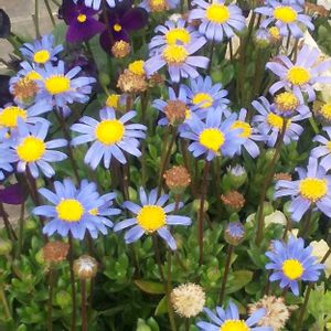 今日のお花🩵デイジー🩵 デイジーとマーガレットの違いが良く解りません。😅 こちらはブルーデージーとのこと🩵 お出かけ先き🩵