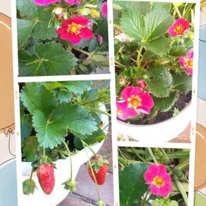 ガーデン・ストロベリー🍓 今日のお花🍓 赤いお花に赤い実🍓 鑑賞用ですが、🍓は食べられます🍓 過去pic