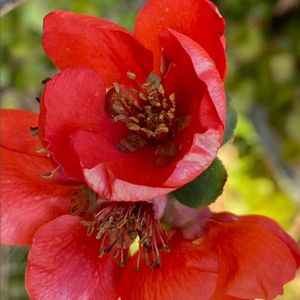 3月22日 今日のお花 ❤️🍃 ボケ 🍃❤️ 花は3~4月頃に咲き、朱赤、紅、赤、白など多色です。 [別名]ホウシュンカ(放春花).カラボケ(唐木瓜) この植物は、平安時代の初期に中国から日本に渡来したと言われてます。観賞用の植物として、鉢植えや庭木として栽培されてきました。「春告草」と呼ばれるながウメですが、この植物は、「放春花」た呼ばれます。ボケは暖かくなり始める突起、葉が出るより先に花を咲かせ始めます。咲いた花は明るく鮮やかな紅いらわしており、緋色と表現さらるこたがあります。稀に、一つの花の中に、紅色と白色の入り混じった花が咲いているものもあります。果実の姿は、ウリの果実な似ています。ウリのような実をならせる木という意味で、漢字名は、「木瓜」た書かれます。 🏷️おしゃれな土曜日♪
