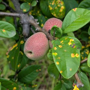 百日草💠 実家のボケの実。実がなったのは初めて見たような… カリンと似ていますね、カリンはシロップやカリン酒をよく作りますが、ボケの実で作ったことはありません。沢山実をつけたので挑戦してみようと思います☺️