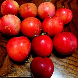 おはようございます🎵 風が強くて、眠れませんでした😰‼️ 1️⃣、2️⃣すもも(いくり)植えて3年目! ようやくこれだけ収穫出来ました🎵 あと数個まだ熟れてないのがありましたが、風で落ちてないかな😰⁉️ 3️⃣庭のニンニク! 去年ニンニクについてた赤ちゃんニンニクを放置してたら、今年はこんなに大きくなりました🎶 4️⃣ボケの実! 今年は一個だけ実がなってました! でも一個だけでは加工がしにくいですね😅‼️