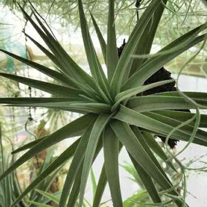 とげとげしい感じの チランジア・アエラントス “ジャイアント” 水やり中に葉先が手に当たると、チクチク痛い😵💥。 固い葉のチランジアです😃。