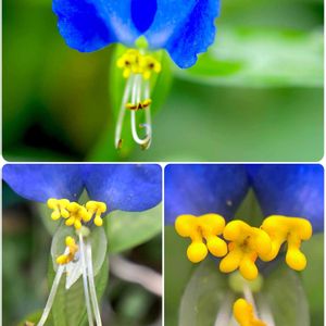 涼しくなるような花 アオバナ(大帽子花)が沢山咲きました 午前中に咲いているので 午後には萎れてしまうので 朝ちゃんと見ないとです 滋賀県草津市の花で この花が加賀友禅の下絵の顔料になるそうです 乾かして、水に溶かしてみると藍色のとっても綺麗な青が出来ました ツユクサの変種なのだそうです 大きさは、 ツユクサよりずいぶんと大きく だいたい1枚目の写真と同じくらいの花の大きさです 3枚目、4枚目は 暑〜い夏の🌞が似合う花 ヒオウギ 黄色いのは 156cmの私の顔辺りまで高さがあります