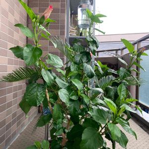 みんなの所は風強い?🍃🌀🍃 ゆうは風が強いとベランダが心配でずーっとベランダを見ちゃうんだけど 今日の夜?から天気が悪くなって雨も降るみたいだから風と雨のダメージはハイビスカス🌺も含めて葉っぱの柔らかい子達はすぐ弱ってしまうから心配🥺 蕾が2つあるんだけど落ちなきゃいいな🥺 #ハイビスカス#🌺#ソテツ#蘇鉄 後ろのソテツちゃんも新芽が出てきてるから頑張って🥺