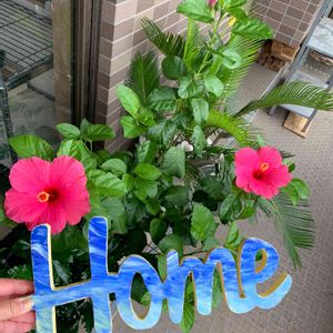 こんにちは☺️どーしても3個一緒に咲いてる🌺所を撮りたくて待ってたけどこの気温と天気だと無理そうなので2個の状態で諦めました😂💦 思ったより雨も降らないで良かったけど ニュースを見てて心が痛くて痛くて SNS全部更新出来なくて遅くなっちゃったけど 植物の成長は止められないので残しておくね📸 やっぱりゆうは家好きです☺️ なのでこのHOMEのプレートお気に入りなの笑☺️ それじゃあハイビスカス🌺は今日はこれでおしまいです☺️ また夜におやすみなさいしに来ます☺️ #ハイビスカス#🌺#木製アート#塗装#ソテツ#蘇鉄