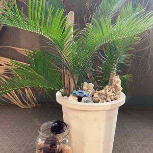 ソテツはもうクルクル期が終わって逞しくなってる❤️ ソテツと瓶と貝殻のコラボはゆうのオリジナルかな😅💦全然お洒落とか無いけど好きにやってます笑 #ソテツ#蘇鉄#貝殻#流木