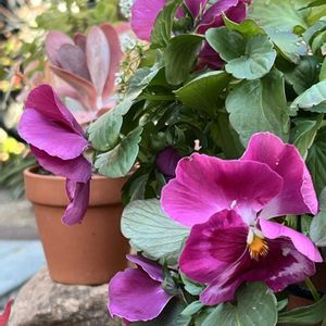 おはようございます😄 1.パンジー恋ももさんが引き立って可愛く見えました🥰💖 2.火祭りは 以前よりも紅く染まっています❤️ 3.ミセバヤと カランコエ•デザートローズ🥰❤️💖