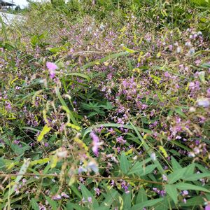 『荒地盗人萩💕🍃』 比較的、近年入ってきた帰化植物 花は帯青紫色💕🍃 盗人萩より大きい花です❣️ 実がくっつき虫になります。 熟した実はカギ状で服に くっつきます⤵︎💦 くっつき虫、服につくと大変です💦 マメ科 ヌスビトハギ属