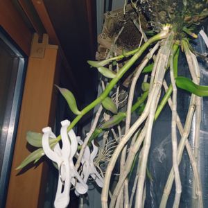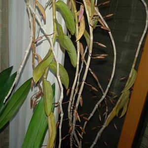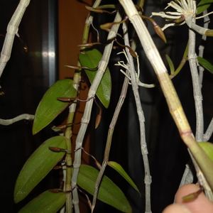 折れたバルブを角材に括り付け丸5年、今回が初花。 でもってアフィラムの1番花。浴室に吊ってたからね。 元株の方もそろそろ咲き始めている。 デンドロビウム アフィラム Dendrobium aphyllum (Roxb.) C.E.C.Fisch. (1928)