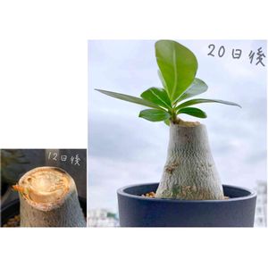 ばっさり剪定したアデニウムさん。 10日ほどで小さな芽かな〜?と思われるものが見えてきた〜と思ったら、 20日後には立派な葉が出てきて、ようやくアデニウムさんらしくなってきました! とても成長が早くて、その生命力にびっくりします。 このまま経過を見守ります😊