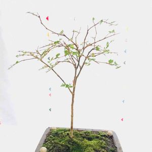 二週間ほど前に全葉刈りをしたモミジに葉が出てきました。樹高10cm。