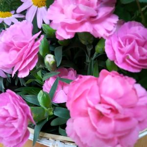 今日のお花 カーネーション☺️ 母の日の寄せ植えが 届きました✨🎁✨ 寄せ植え風で 後から個々に鉢に植え替える予定です😃💕 苦手なカーネーション 上手く育てられるかな😅