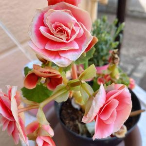 リーガスベゴニア 2色💗❤️ 植え替えしなきゃ🫣 ➂トリトニア〜 オレンジ🧡に続いて🤍が咲いてきた‼️ 一緒に咲いてほしい😆💦