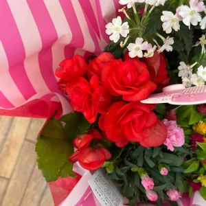 ホームセンターにて、夕日に輝く「リーガス ベコニア」をパチリ!📸🌺🌿 今日も調いました。♨️🧖♂️🍻😊😄✌️