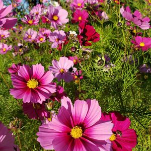🌸コスモス🌸 (キク科 コスモス属) 綺麗だね~😃 所々に白が…🌸優しく色を添える。 この写真では、白 かなり少ないね。 元気が貰える💓 これは、種を蒔いた方の好み? 見る側の気持ちを考えてのもの❓ どっちもかな😄😆😄 お花の力は凄いね🌸 紅葉も🍁🌿🌱🌳景色もだね。 おっと!空もだね🌟🌛 獅子座流星群 見てみたけれど 我が家からは、橋と街頭の明るさで ちょうどの所が見えない。外にも出てみたけれど やっぱり橋が邪魔💦 もう少し 歩け~🚶♀️だね。でも、夜🌠怖い😱女の子だもん👻😁😁😁どこがじゃ~ (^ー^;🙏 11/9写真