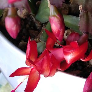 おはようございます♪ 〈窓辺の植物〉 ジャコバサボテンが光を浴びて 綺麗に咲いています♪ 先日の朝焼けはオレンジ色の空 🏷雲仲間🏷アート雲☁️ 🏷窓辺の植物たち 🏷金曜日の蕾たち