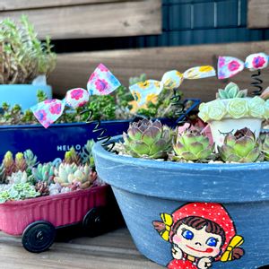 こんにちは😃 🏷️ペコちゃん祭り 🏷️センペルンルン月間 参加しまーす💕 ①ペコちゃん鉢のセンペル元気いっぱい😁 小学生の息子がコネコネ…玉…玉…玉 (え?何作ってるの?) ミルキー食べながらミルキー作ったらしい🤣上手だね〜玉⚪️🤣 せっかくだからボンドで食べた分の紙はっつけてもらった🍬🍬🍬 ②南向きの多肉棚が完成🎉 裏庭で外に慣れたであろう多肉を移動させてみたら… あんまり余裕がなくて多肉増やせないじゃん💦 棚を増設するしかないか🤔