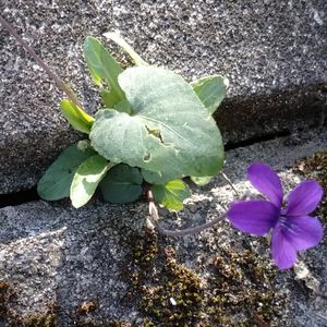 ど根性シリーズ 今日のお花、すみれ アスファルトの隙間から、満開です。