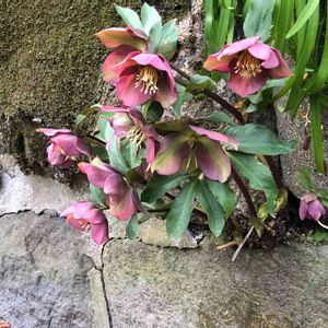 石垣の間に種がこぼれて育ってしまったクリスマスローズです😱。