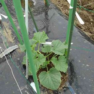 育苗した網干メロンとマイクロきゅうりを定植しました。 えんどうのネットをそのまま流用してます。