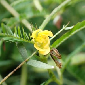 カワラケツメイ 河原にいました。 健康茶として、飲まれているそうです。体にいいのかな。 黄色い5弁花です。元気なさそうに開いていました。長さ7ミリぐらいの小さな花です。(①②) 葉は、互生で、短い葉柄がつく、羽状複葉です。綺麗な葉でした。 茎は、紫褐色で、毛が生えていました。(③) 果実ができていました。豆が上を向いていました。(豆が下を向いてついているのは、クサネムだそうです。) (④) 9.16