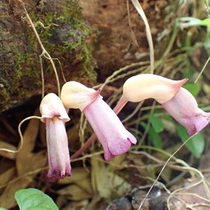 今日のお花 ナンバンギセル 今年は、都市公園で会うことができました。湿った山道の脇にいました。 何に、寄生しているのかな。 3枚目は、花が咲いたあとの、実。 初めて見ました。写真がぼけていて、残念。なにしろ、暑くって、観察会だったから、前の方についていくのに、精一杯で、立ち止まれませんでした。 今度は、実をゆっくり観察したい。 今後の課題です。 4、5枚目は、高尾山のナンバンギセル。ススキの茂みにいました。これは、蕾かな。昨年、9月の写真です。 ①②③2025.9.16 ④⑤ 2024.9.2