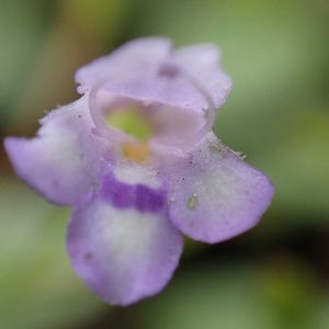 ウリクサ ひっそりと地面にはって全然目立ちません。今まで、小さすぎて、知らずに踏んでしまっているよね。 でも、知ってしまうと、やたら、目につきます。 淡い紫色をした、とても小さな花です。唇形で、上唇は、浅く2裂、下唇は、3裂しています。中央の裂片に濃い青紫色の斑紋があります。 (①) 長さ7ミリほどしかありません。 花が終わって、実になりそうな姿も見られました。(②) 萼の中に小さな丸い実。この形がマクワウリに似ていることから、名前がついたそうです。全然大きさが違うんですけど。(③) 葉は、たまご形で小さく長さ1センチちょっとくらいです。粗い鋸歯があります。(③) 対生で葉をつけては、そこから枝を伸ばし、広がっていました。(④) こんな具合にごちゃごちゃと、広がっていて、 やっぱり、踏んじゃうよね。 9.20