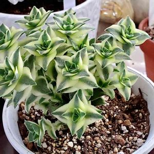 【クラッスラ 南十字星⭐️】 下の方の葉っぱは普通の色なのに上の方は斑入りになってる…?? そんな事ってあるのかな?🤔 おまけにフラッシュ📸焚いたからなんか神々しいし😅✨✨