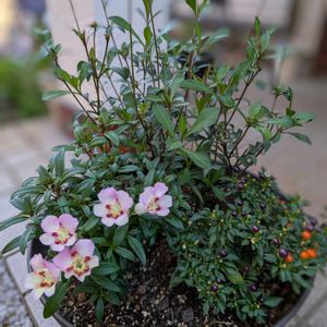 寄せ植えの金魚草の花が一旦おやすみの後また咲いてきました💐 花色がピンク🩷に変化 チョカモカも花が増えてきましたが丈が高く別撮りしました📷️