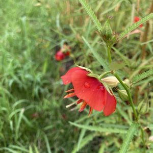 ゴジカ🌼 午時花 アオイ科(アオギリ科) 🏷️真っ赤な火曜日 🏷️真っ赤な花 🏷️名前の由来が素敵 🏷️一期一会の花♡ 参加します 花ぶら散歩🚶♀️より 名前由来 午前11頃~咲き始て昼から午後が見頃の一日花です(午.うしの刻11時~13時に花が開く事から)漸く逢えました💘💖 一期一会のお花✨️😂💕
