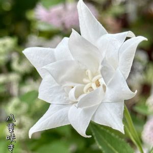♡八重咲きキキョウ♡今日のお花 青の八重咲きが咲き終わると白が咲き出しました。 奥に見えるのはピンクのダンギク庭を華やかにしてくれます𓂃܀❀ .*゚ 🏷️白い貴婦人✨ 🏷️金曜日の蕾たち 🏷️逆再生(∩'-'⊂) 🏷️咲きはじめのお花たち