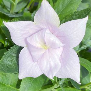 今季ラストかな。 八重咲きキキョウ。 葉は枯れかけです😅