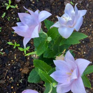 薄青い花が咲いてます 花の名前が分かりません(๑>◡<๑) 桔梗みたいだけど、花びらの枚数が多いかも?