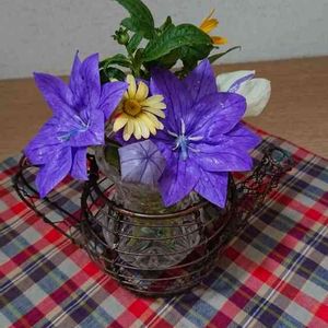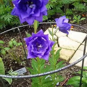 💜八重咲き矮性キキョウ アストラブルー💜 シスタスミッキーの🍀と寄せ植え