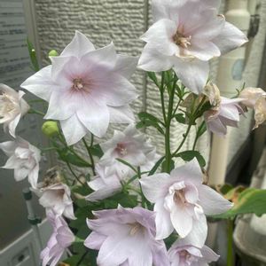 お疲れ様です😵💦 白い八重咲きキキョウです。 初めて行った園芸店から 連れて帰りました😊 少しでも涼しさを感じていただけたら幸いです☺️