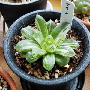 春にお迎えしたハオルチアです😊斑入りの葉がきれい…✨ お迎えした時より葉が増えました😊🎶 マリンということですが、葉っぱが細いような…🤔 かわいいのでいいか(笑)😁💕