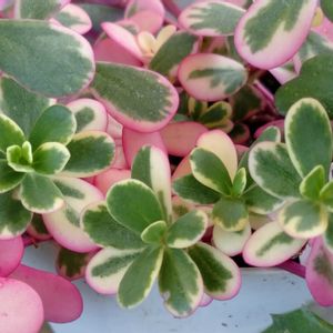 今日のお花。 斑入りポーチュラカ、華ミステリア🌱💗🌱💓🌱 去年のpicです🤗 葉っぱもカラフルでかわいかったなー💕 やっぱり今年もお迎えしようかな💦😅